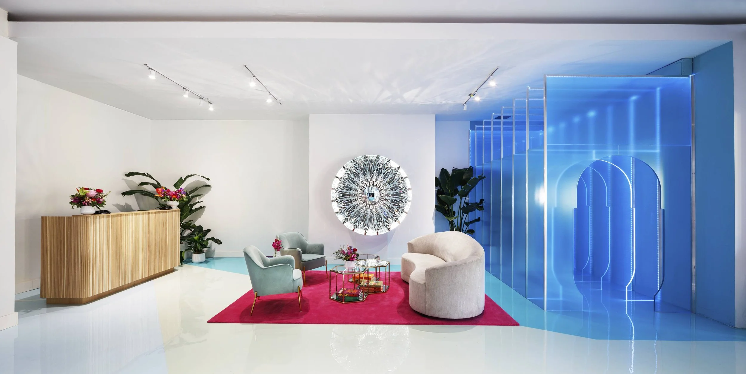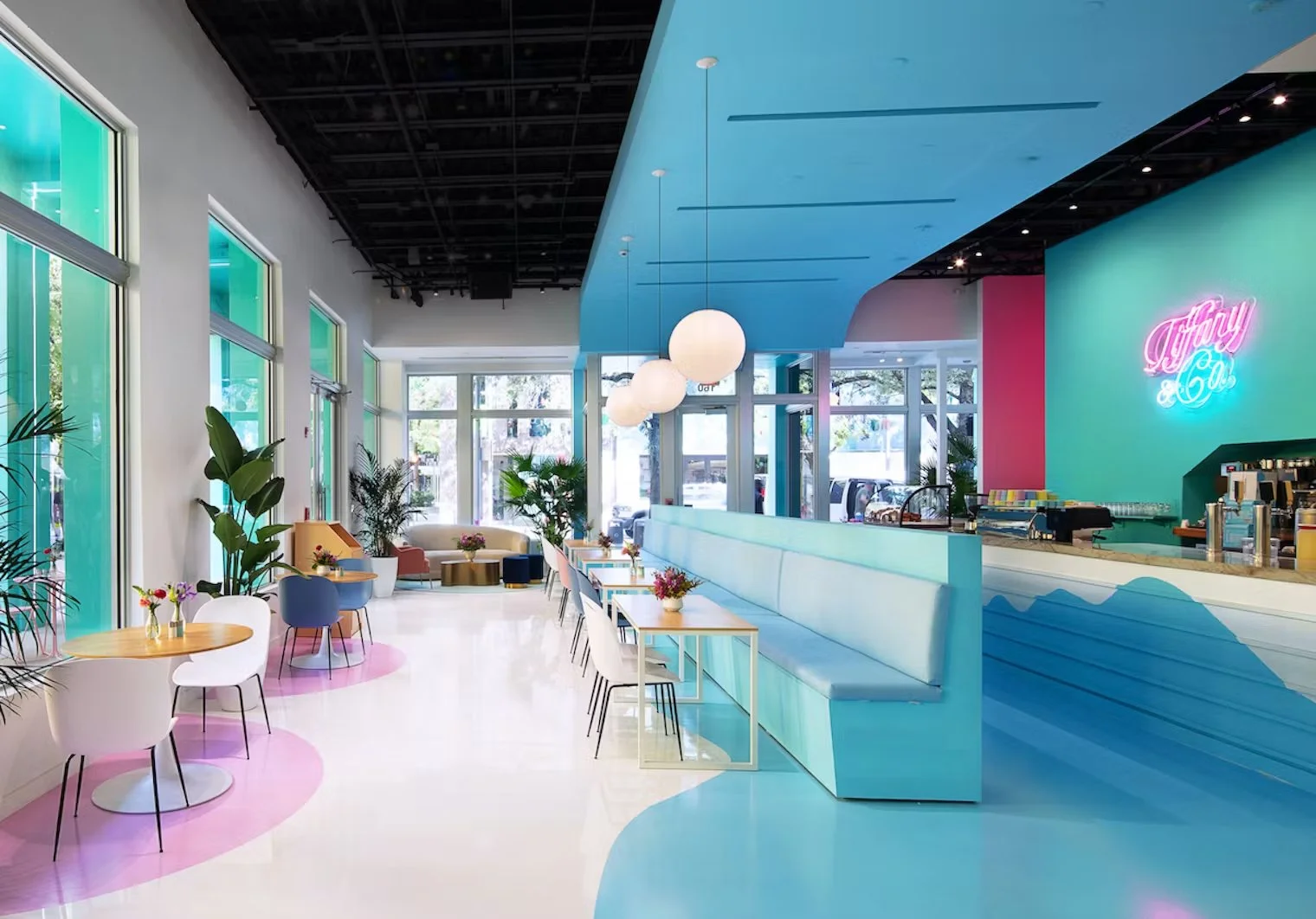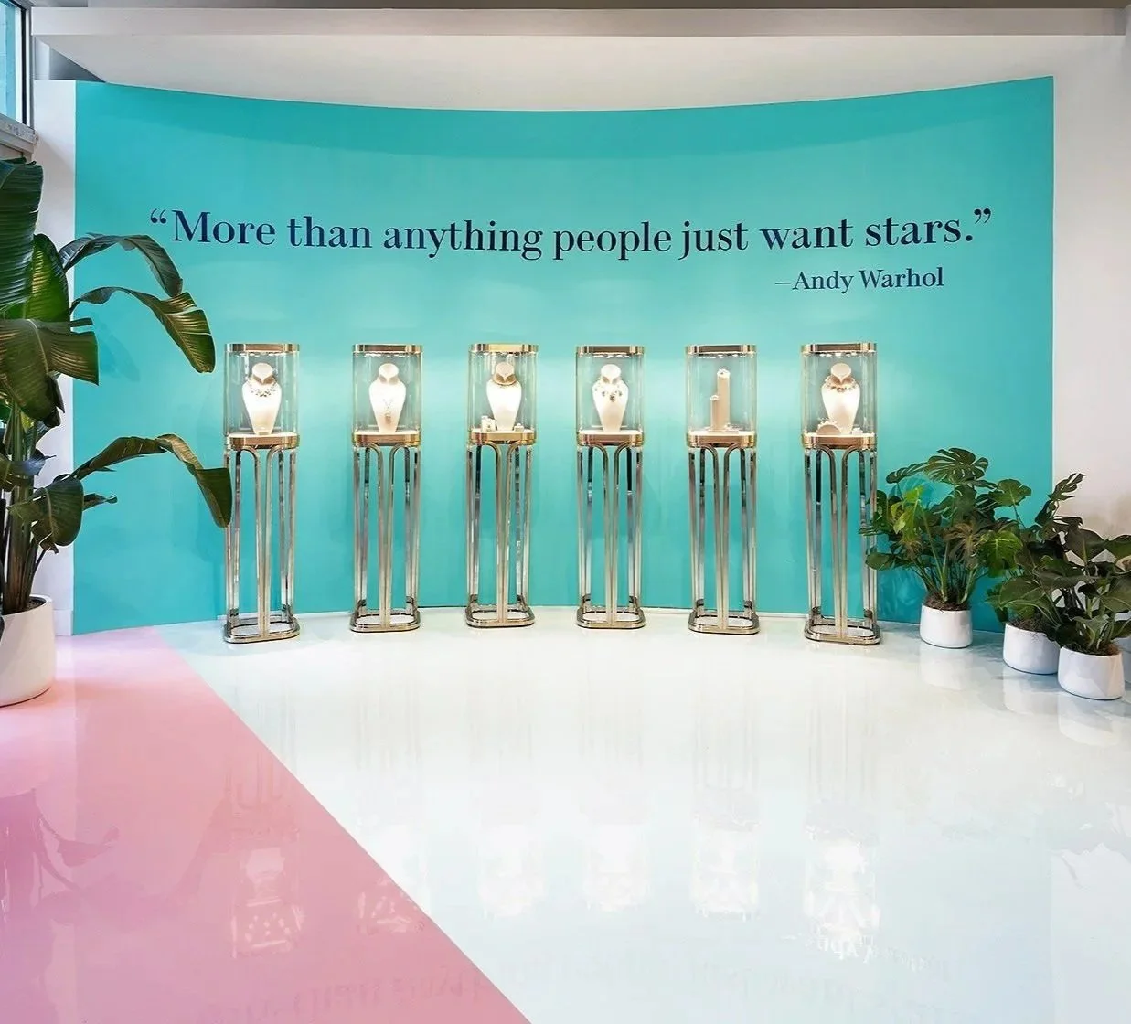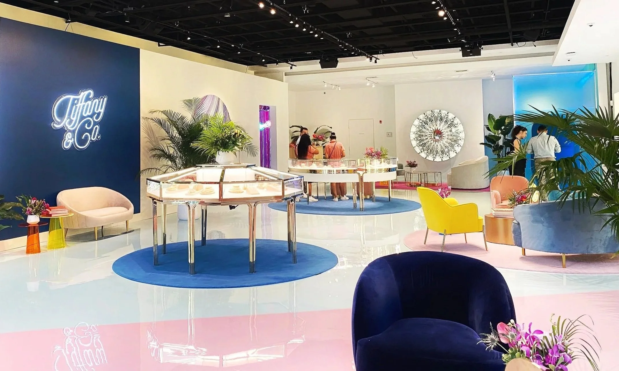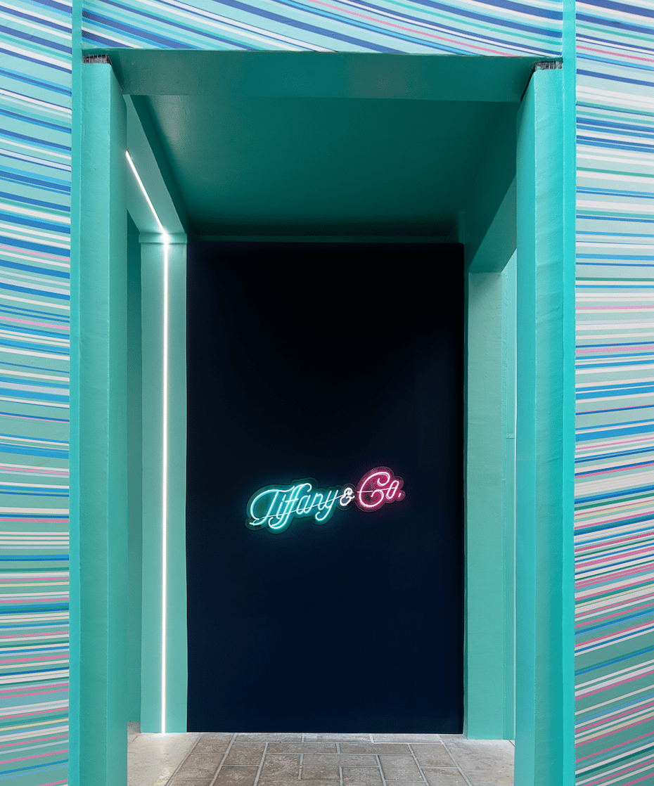 For Miami Art Basel, Tiffany & Co. debuted its first-ever Holiday Pop-Up Shop and Café—an immersive experience celebrating the brand’s storied connection to art and design. The shop paid homage to Andy Warhol’s archival holiday illustrations, which inspired the brand’s limited-edition seasonal collection and holiday campaign. Artists Kai & Sunny were commissioned to create a large circular artwork that served as the centerpiece of the shop, and wrapped the building’s two-story façade. Downstairs, the OTL Café was transformed into T&Co Cafe, pulling from the hues and visual language from Kai & Sunny’s work. Guests entered through an edge-lit acrylic tunnel shaped after the Tiffany Lock, tying the experience to the brand’s latest collection.
